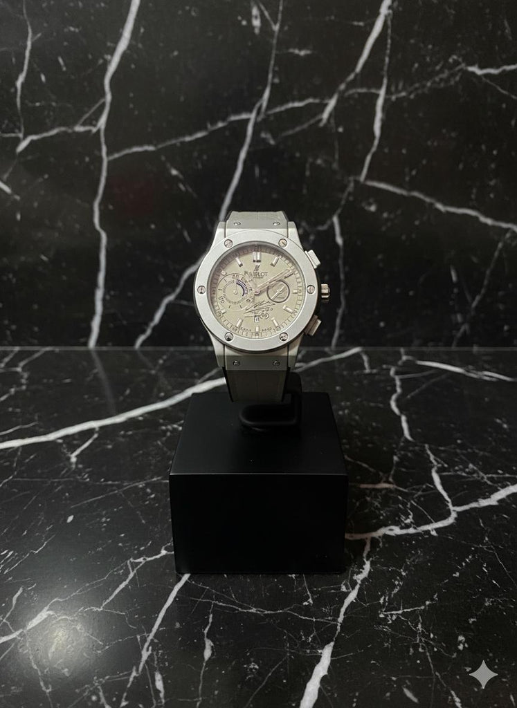 Bezel: Fixed bezel with visible H-shaped screws — Hublot ka iconic signature design